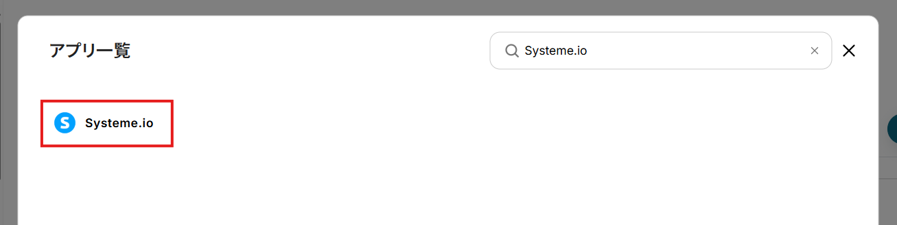 - アプリ一覧画面が表示されたら、右上の検索バーでアプリ名(ここではSysteme.io)を検索して選択。