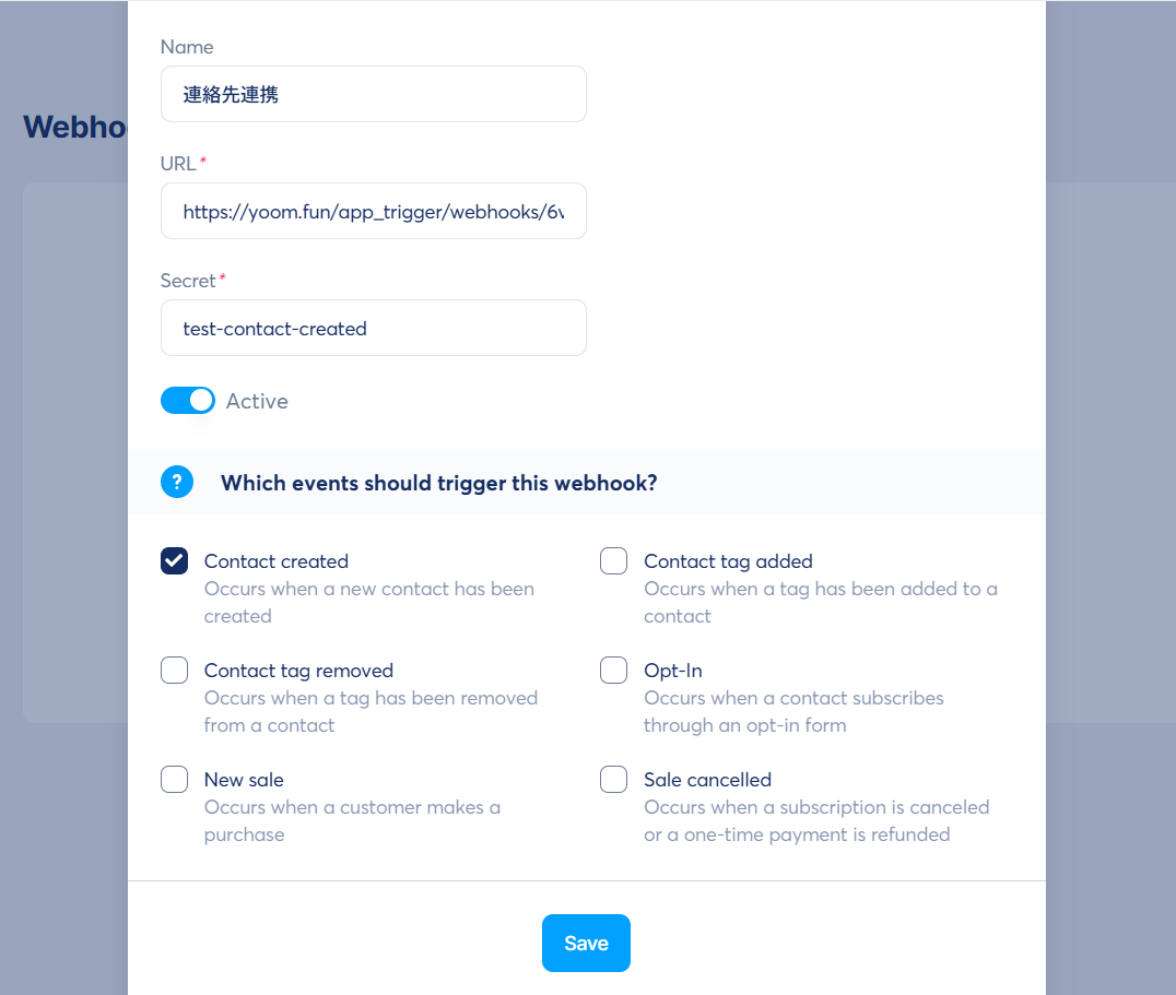 ステップ3:トリガーとなるSysteme.ioのWebhook設定