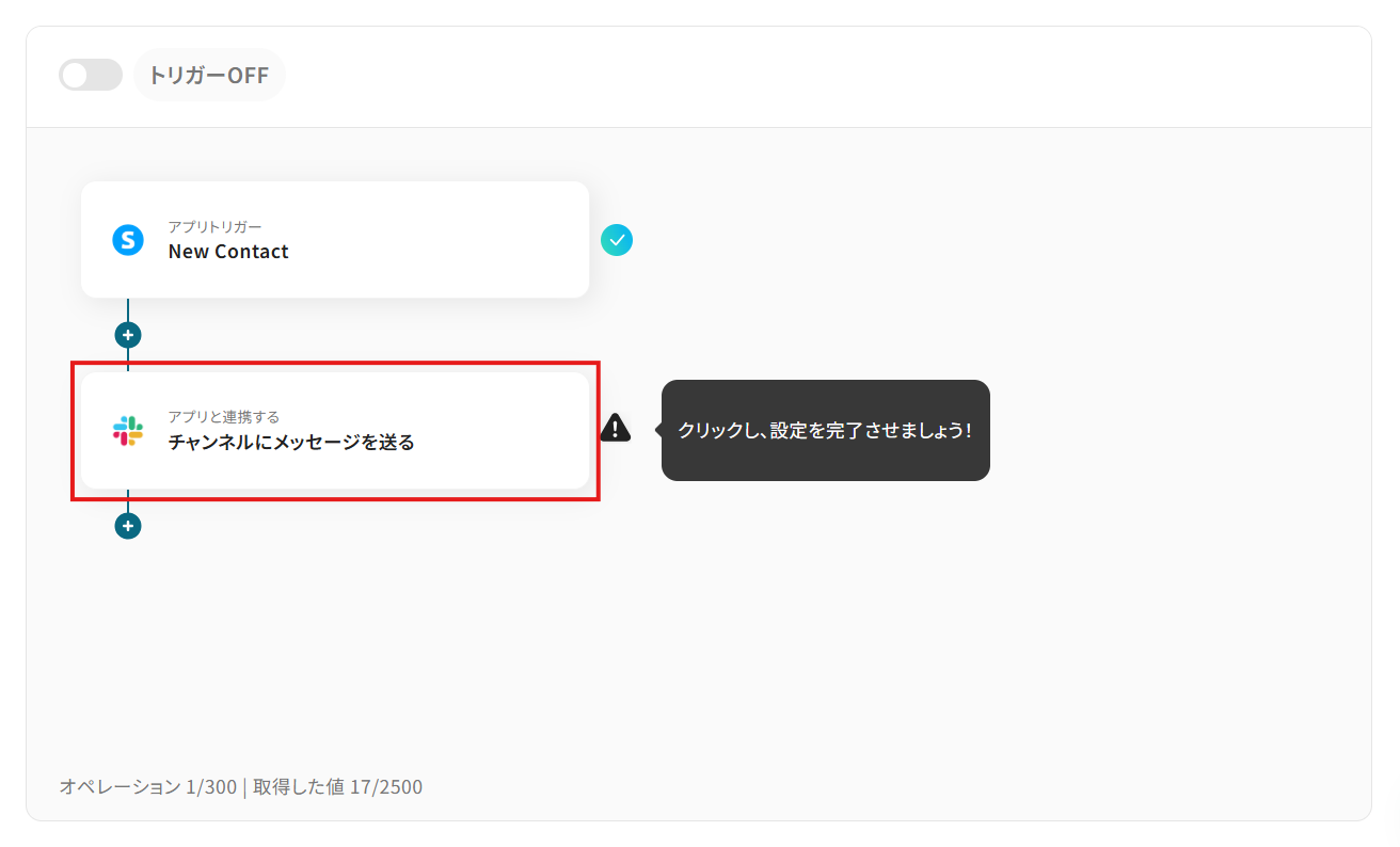 連絡先の作成を通知するWebhookの設定が完了し、フロー画面に戻ります。