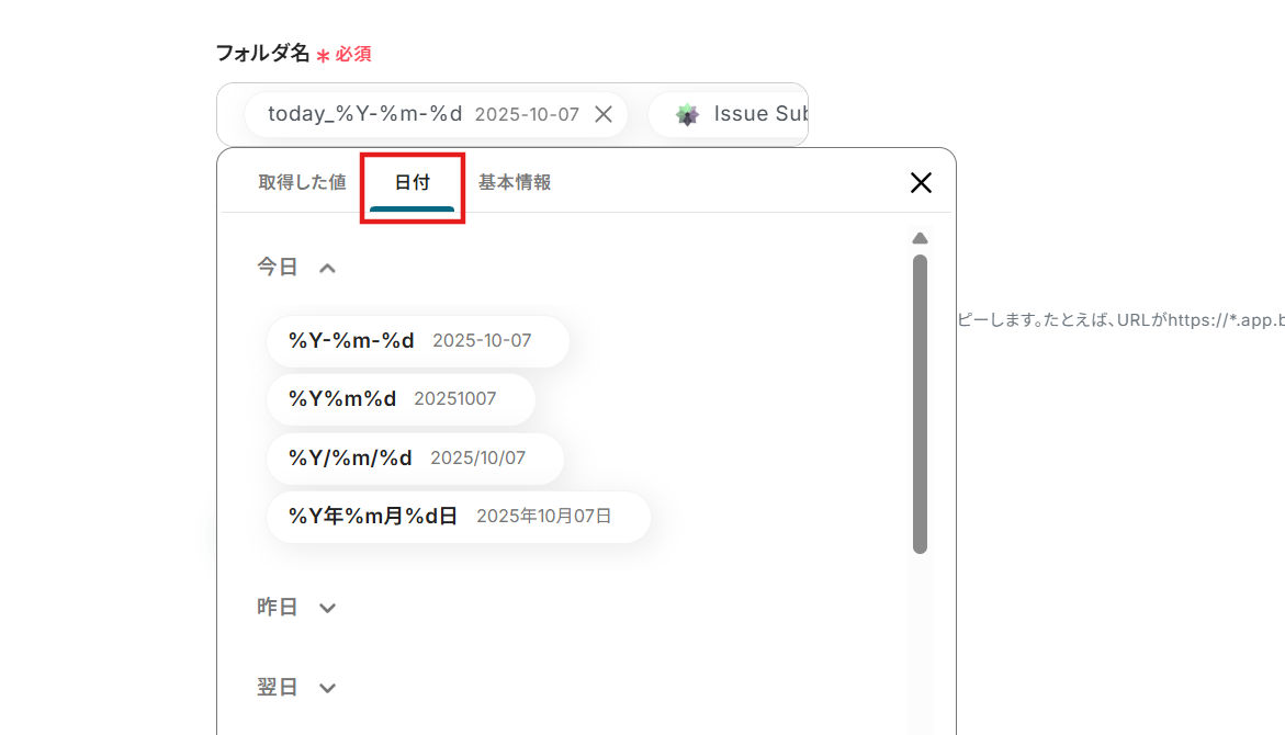 Q:Issue名だけでなく、日付など複数の要素を組み合わせたフォルダ名にできますか?