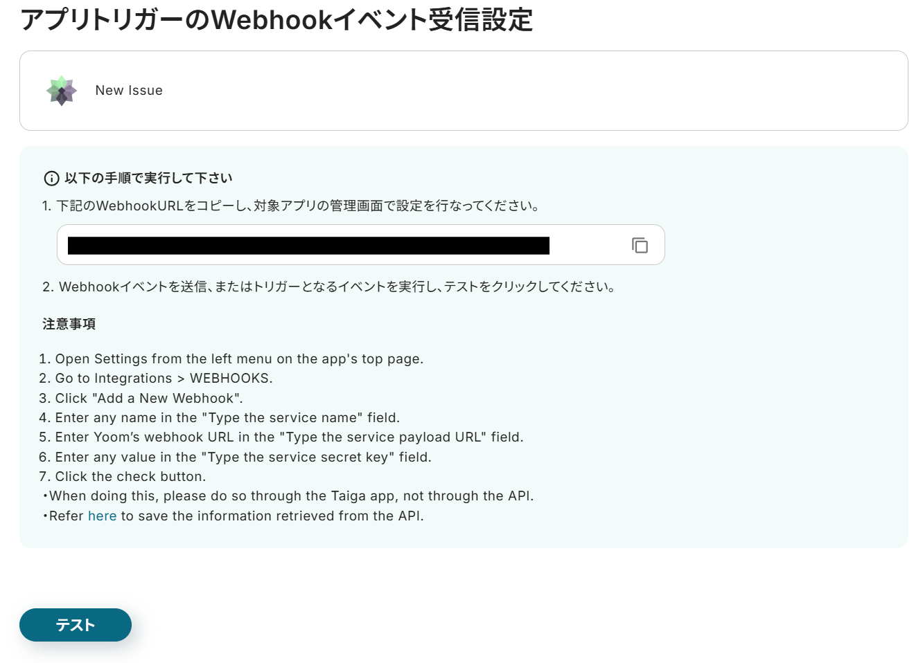 ステップ3:TaigaでIssueが作成されたら起動するトリガーの設定