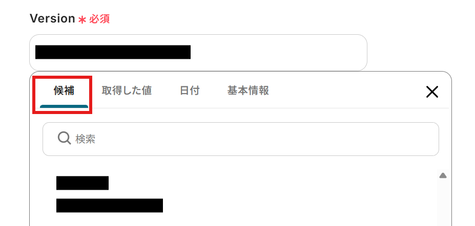 Version:入力欄をクリックすると候補が表示されるので、その中から選択しましょう。ただし、候補はProject IDとIssue IDを設定してからでないと表示されないので、先に設定を済ませておきましょう。