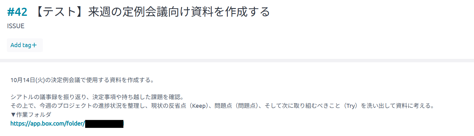 「IssueのタイトルとBoxのフォルダ名を一致させるルールだけど、たまに入力ミスや作成漏れが発生してしまう…」