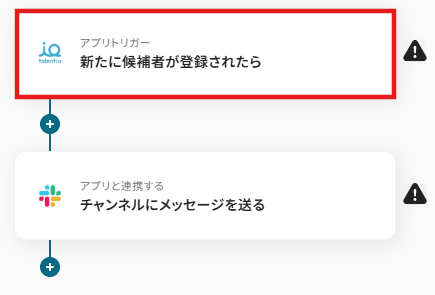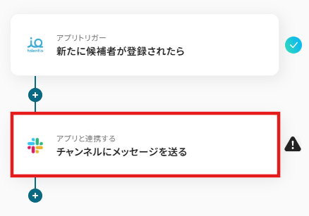 Talentioで新しい候補者が登録されることをアクションの起点として、Slackなどのチャットツールに自動で通知を送ることができます。