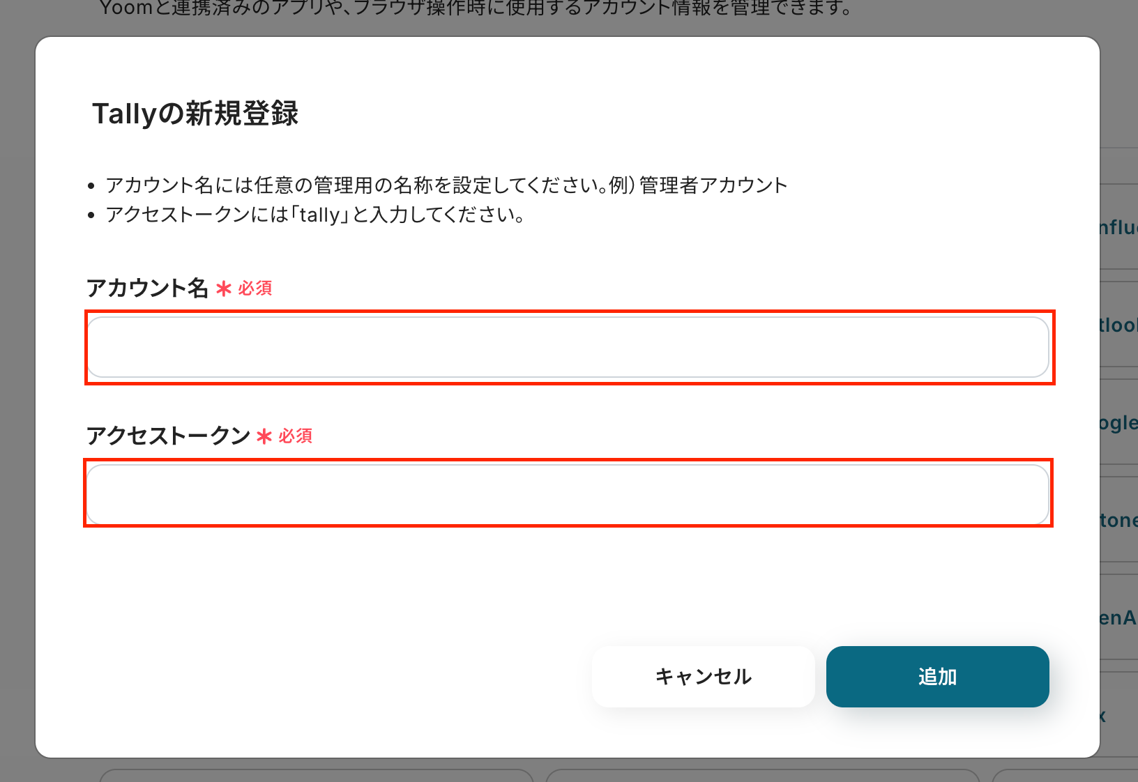 アクセストークンはtallyと入力してください。