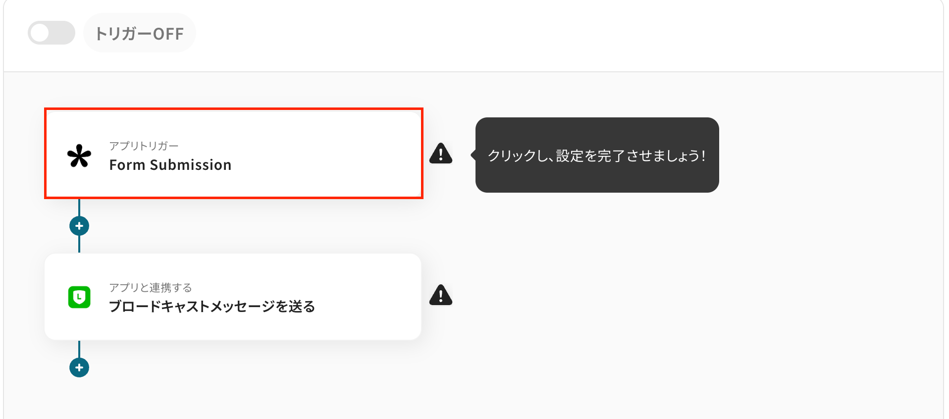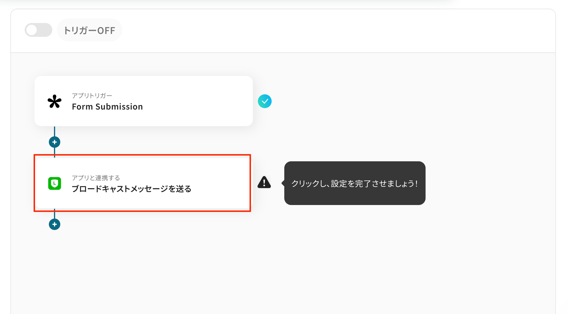 ステップ4:LINE公式アカウントのアクションを設定しよう(ブロードキャストメッセージを送る)