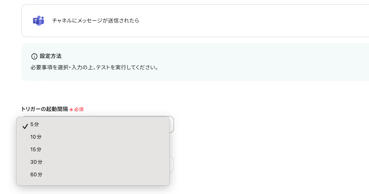 ・トリガーは5分、10分、15分、30分、60分の間隔で起動間隔を選択できます。