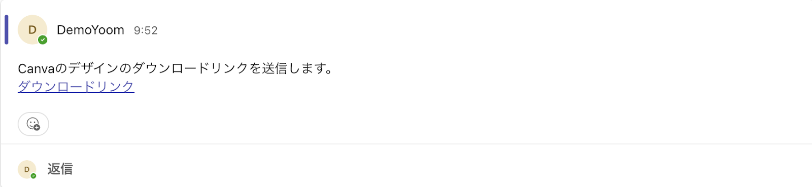 Microsoft Teamsの特定のメッセージをトリガーに、Canvaのデザインへのダウンロードリンクを自動で返信するこの連携は、デザインの共有プロセスを効率化し、共有漏れや手作業によるミスを防ぎます。