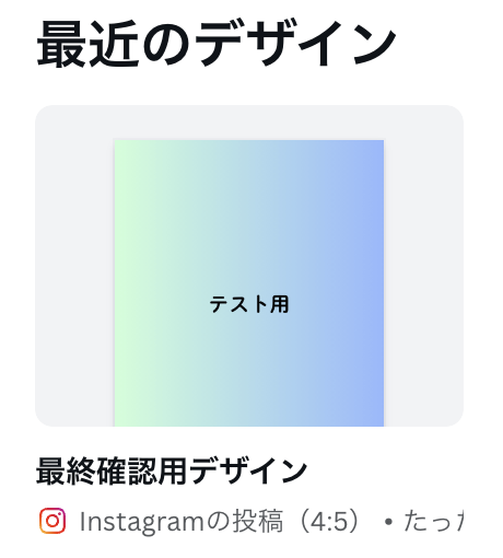 事前準備として、Canvaであらかじめデザインファイルを作成しておきましょう。 今回はテスト用に、以下の内容で作成しました。