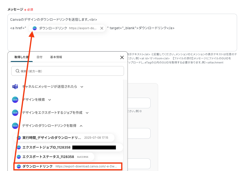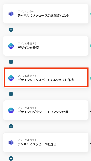 Microsoft Teamsの特定のチャネルでメッセージが送信されたらCanvaのデザインダウンロードリンクを送信する