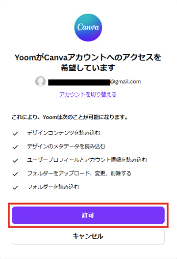 アクセス権限の内容を確認し、「許可」をクリックしましょう。
