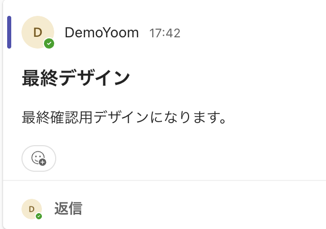テストが成功すると、送信されたメッセージの情報が一覧で表示されます。 実際にMicrosoft Teamsを開いて、指定した内容でメッセージが届いているか確認してみましょう。 Yoomの操作画面に戻り、「保存する」をクリックします。
