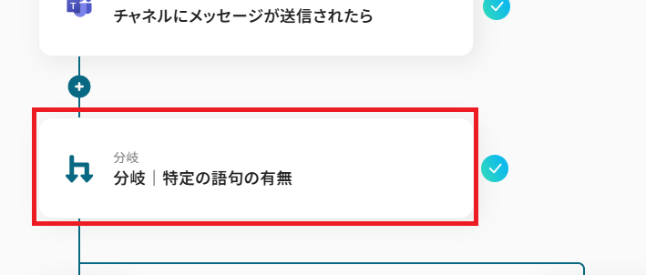 Microsoft Teamsに送信されたメッセージ内容が、DripのSubscriberとして作成すべきものかどうかを判別するために、Yoomの「分岐オペレーション」を設定します。
