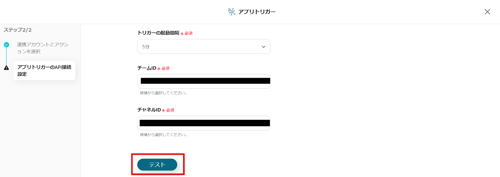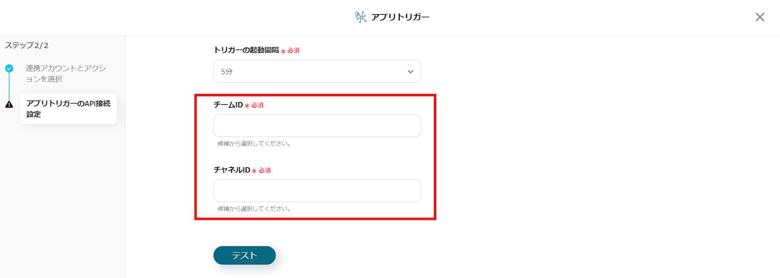トリガーは5分、10分、15分、30分、60分の間隔で起動間隔を選択できます。