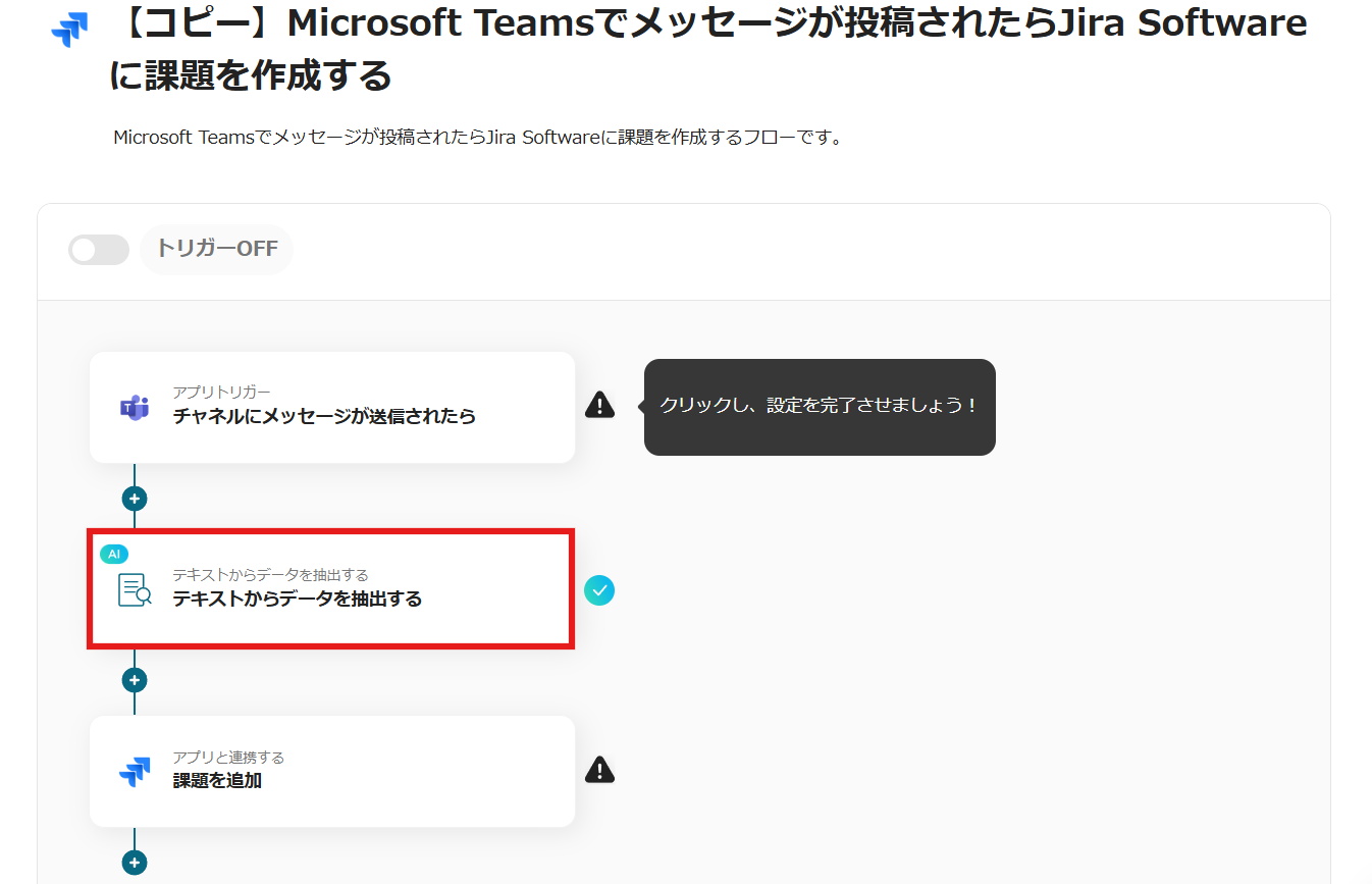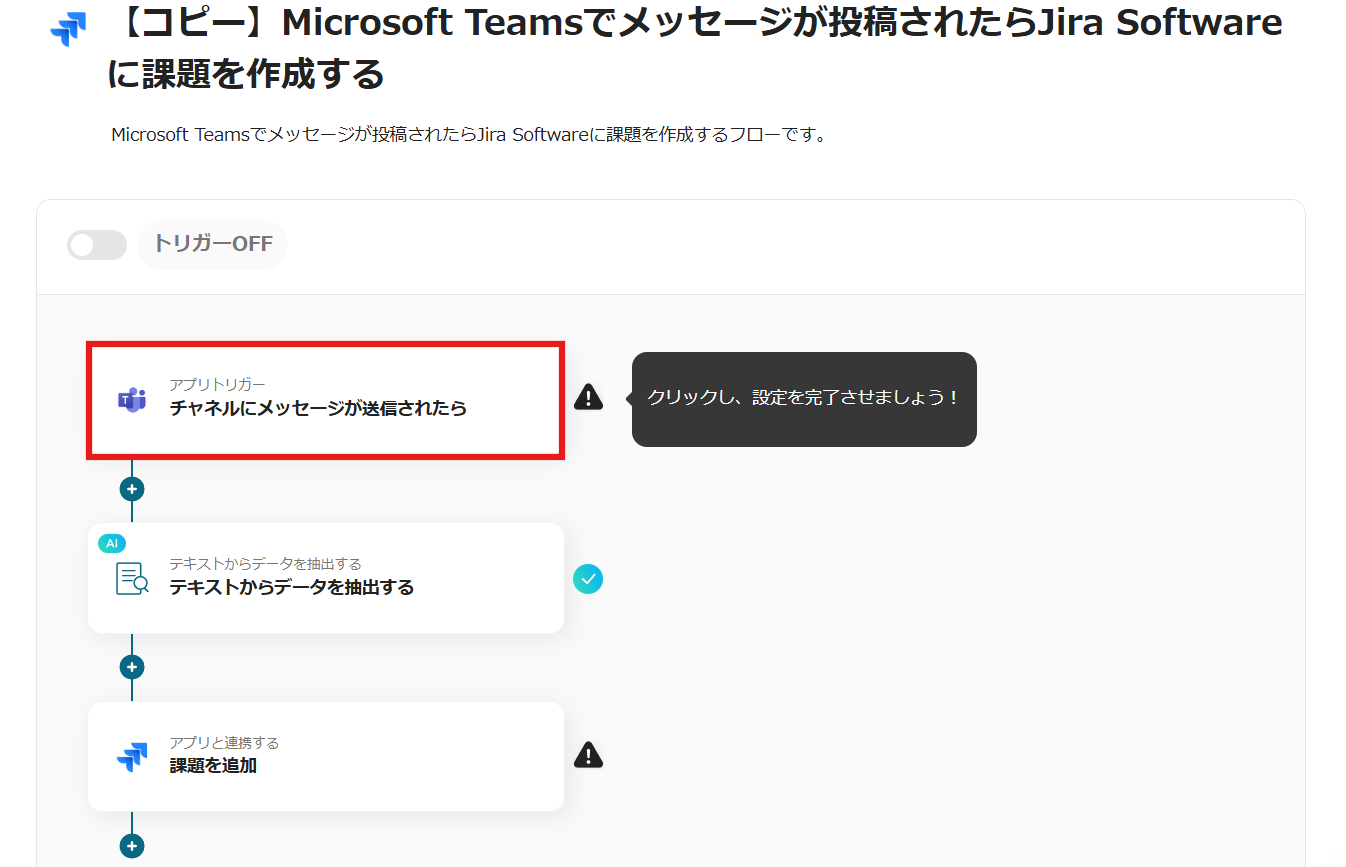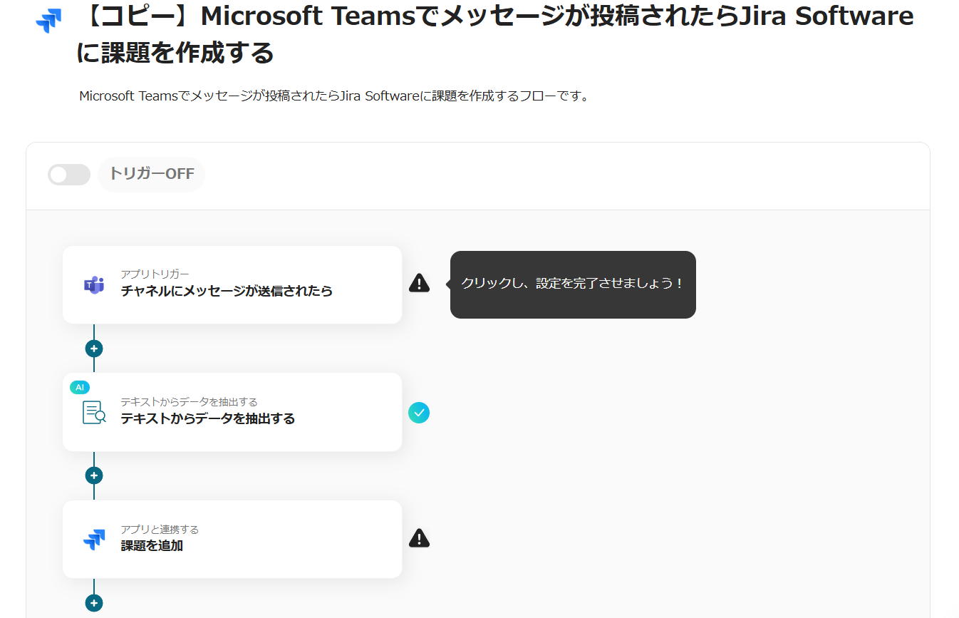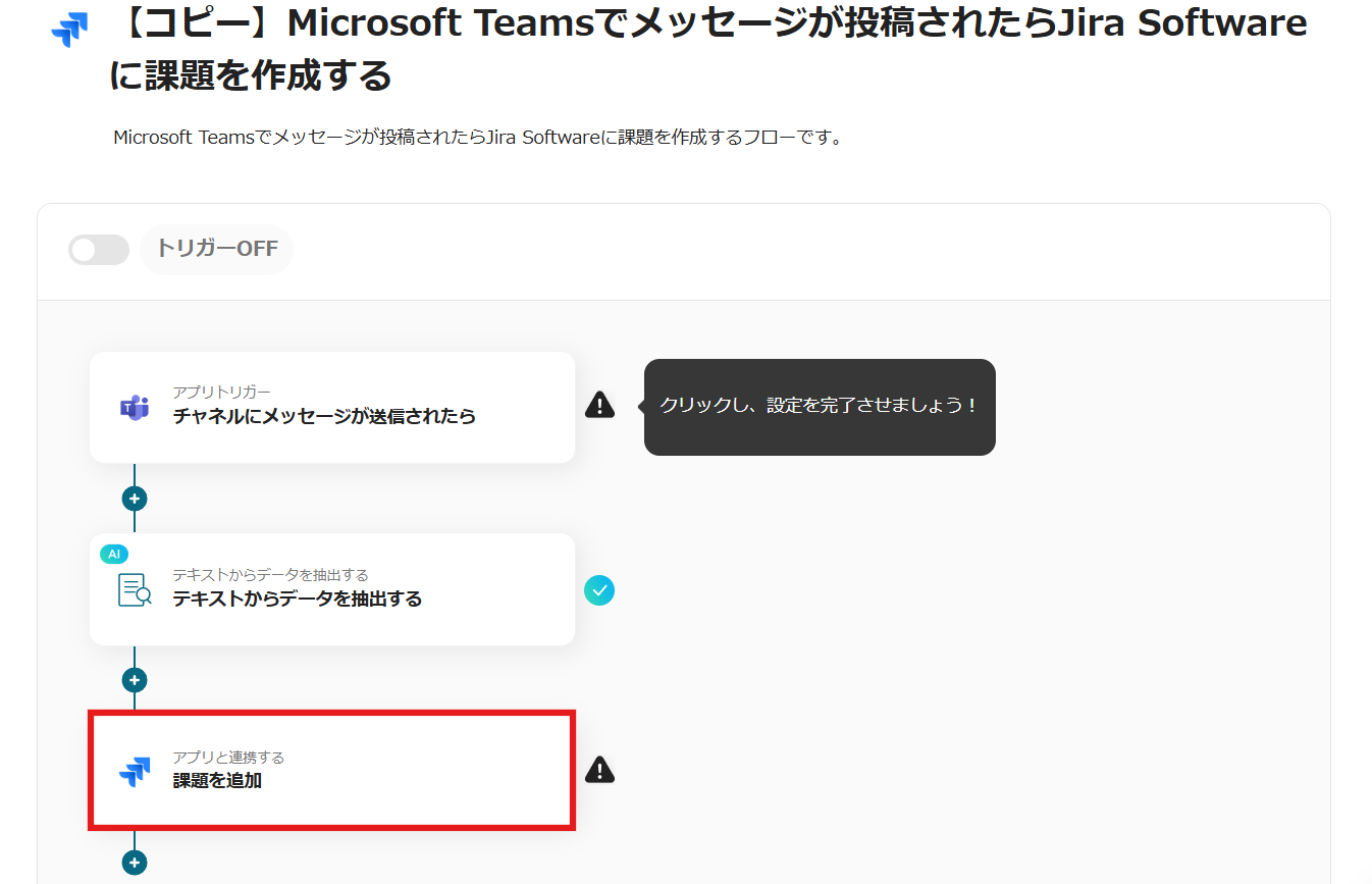 「【コピー】Microsoft Teamsでメッセージが投稿されたらJira Softwareに課題を作成する」をクリックします。