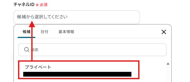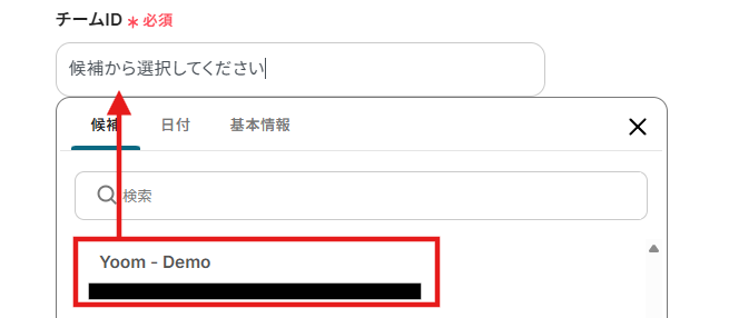 チームID、チャネルIDは以下のように表示される候補から選択しましょう。