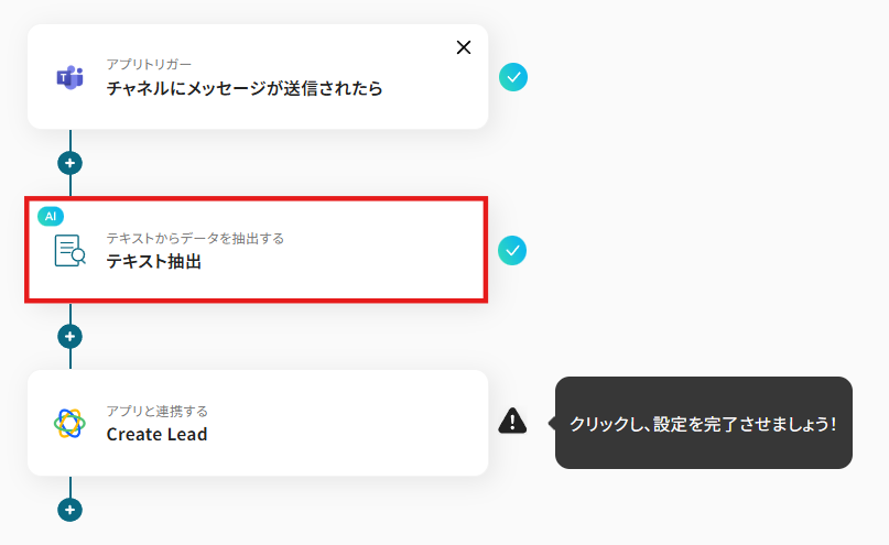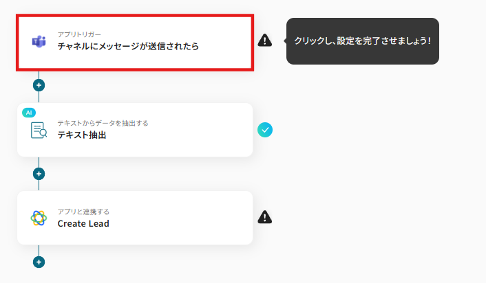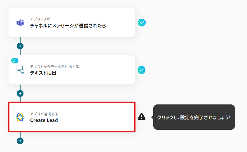 Microsoft Teamsのメッセージから抽出した内容を用いてCloseでLeadを作成するための設定を行います。 以下の赤枠をクリックしましょう。