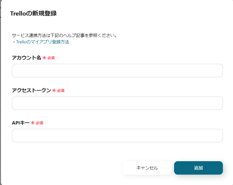 Trelloのマイアプリ連携には、アクセストークンとAPIキーの取得が必要です。