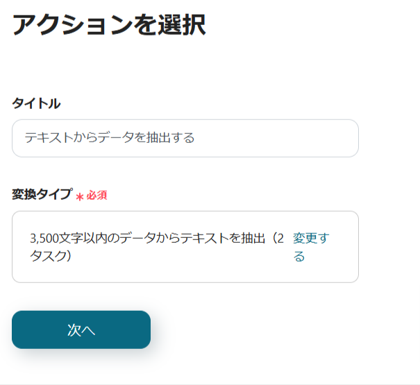 続いて2番目の設定「テキストからデータを抽出する」です。