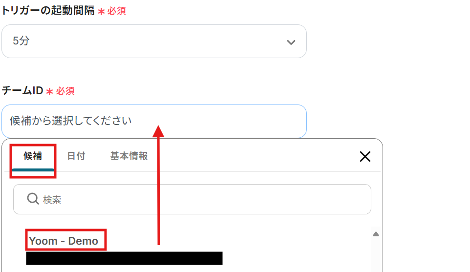 トリガーの起動間隔 :5分、10分、15分、30分、60分の間隔から選べます。※ ご利用プラン によって起動間隔の選択内容が変わります。