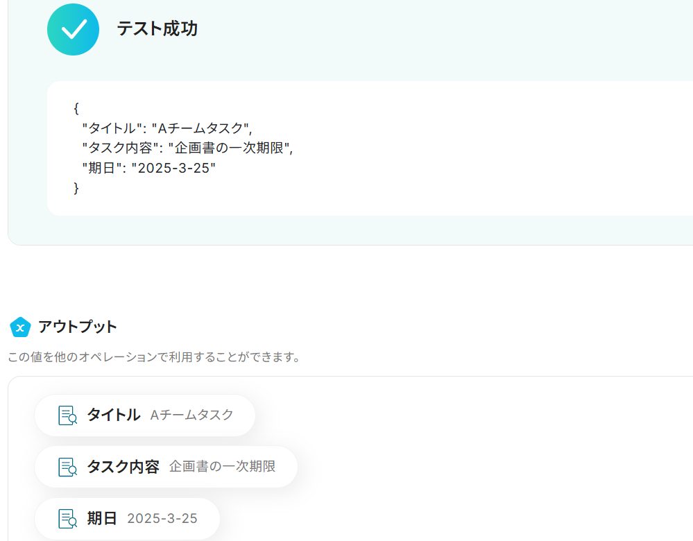 設定が完了したらテストし「アウトプット(取得した値)に抽出結果が表示されたら保存します。