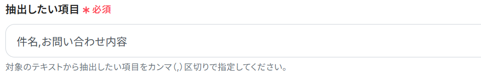 ここに固定のテキストを設定してしまうと、フロー起動時に毎回そのテキストの抽出結果が出てしまうので、アウトプットから必ず選択してください。