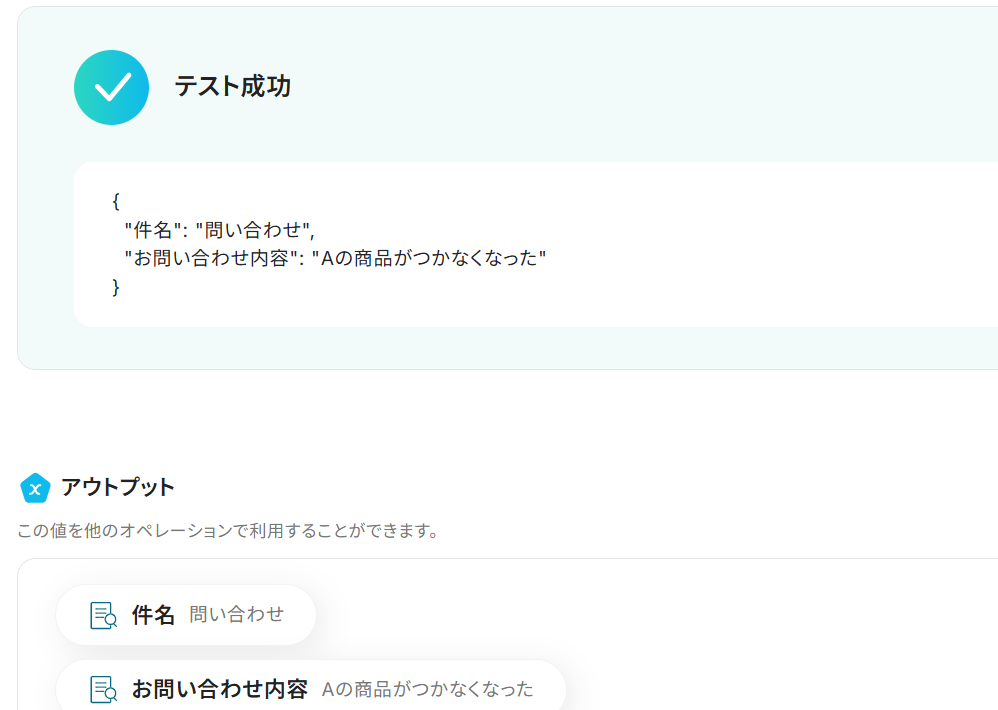 設定が完了したらテストし、アウトプットに抽出結果が表示されたら保存します。