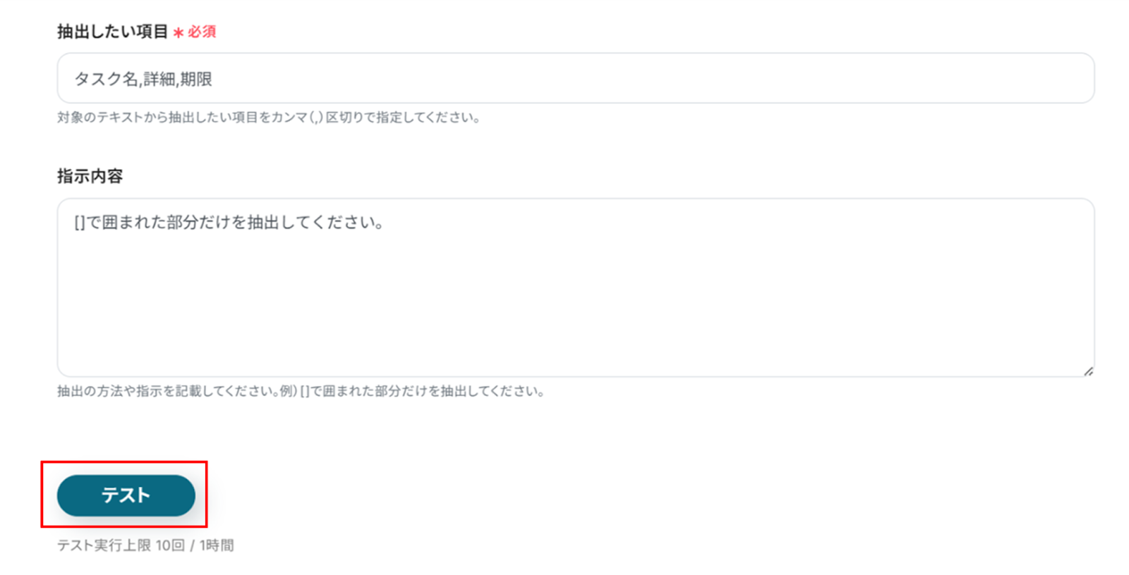 テストに成功すると、取得した値にAIが抽出したテキストが反映されます。