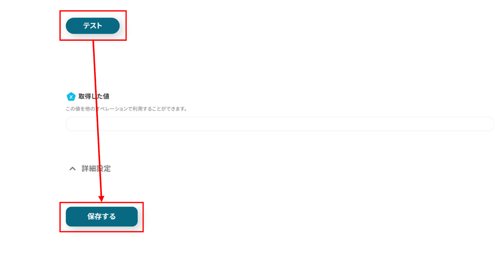 入力が完了したら「テスト」をクリックし、エラーが発生しなければ「保存する」をクリックします。