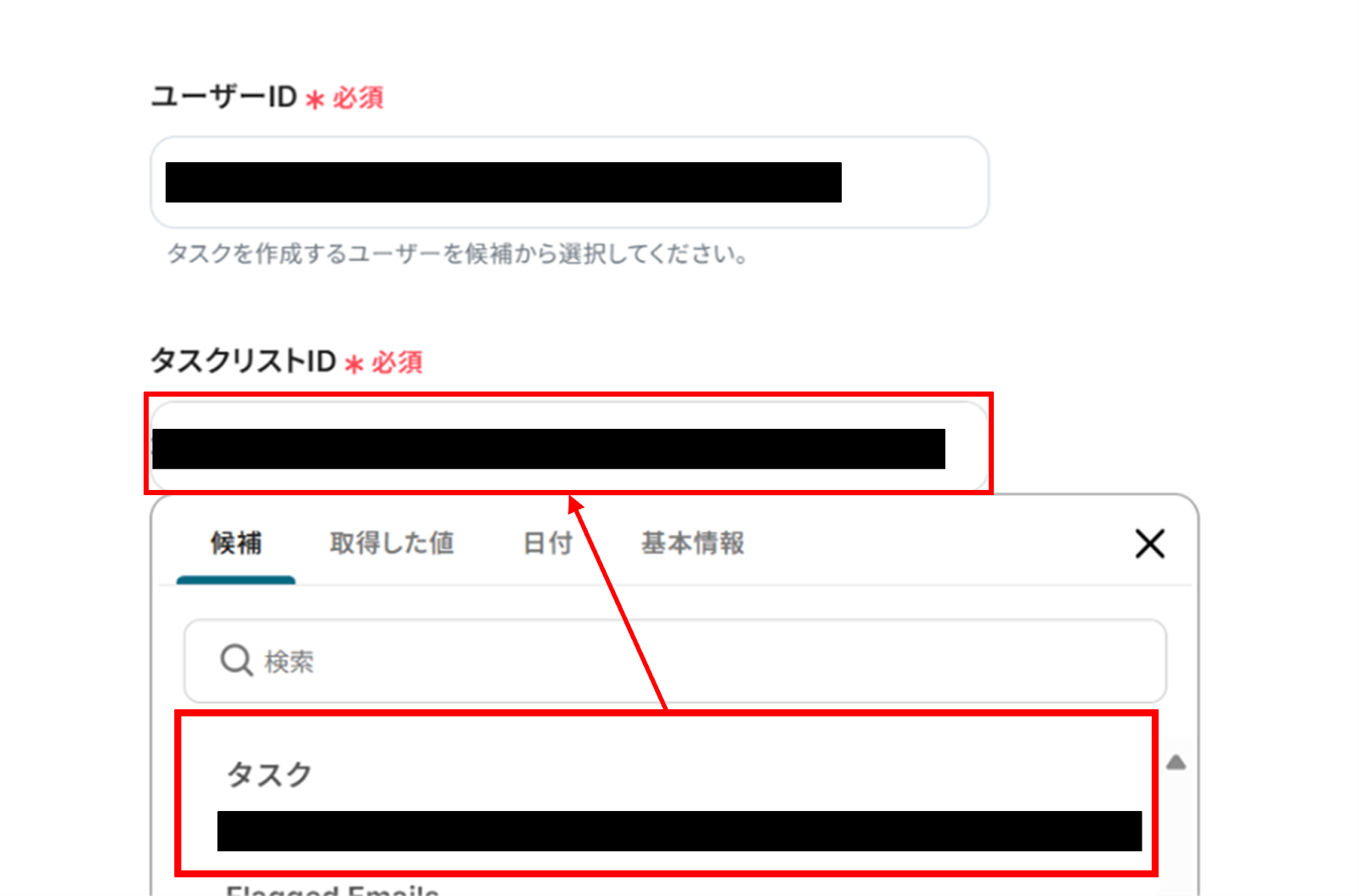(3)「API接続設定」画面から、ユーザーID、タスクリストIDを候補から選択します。