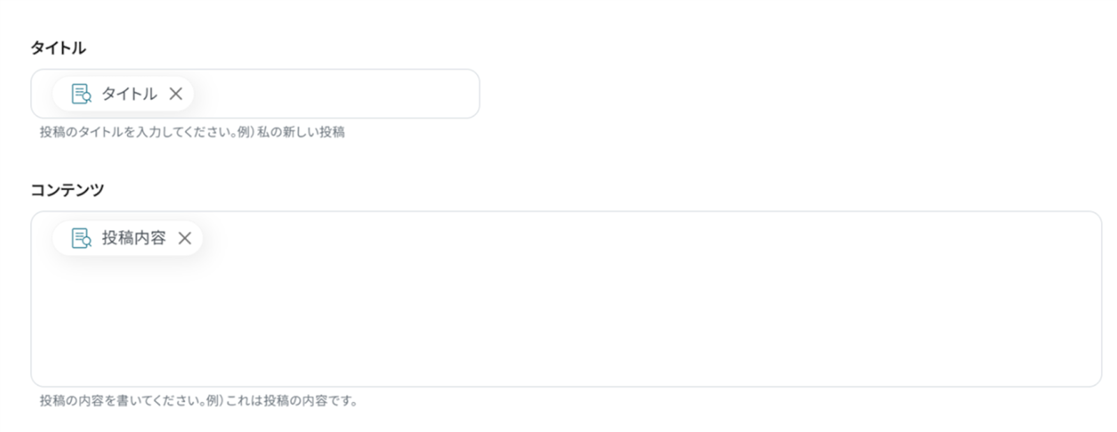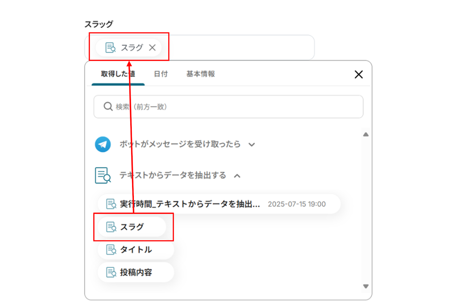 今回は抽出内容を下記のように「スラグ、タイトル、投稿内容」としています。