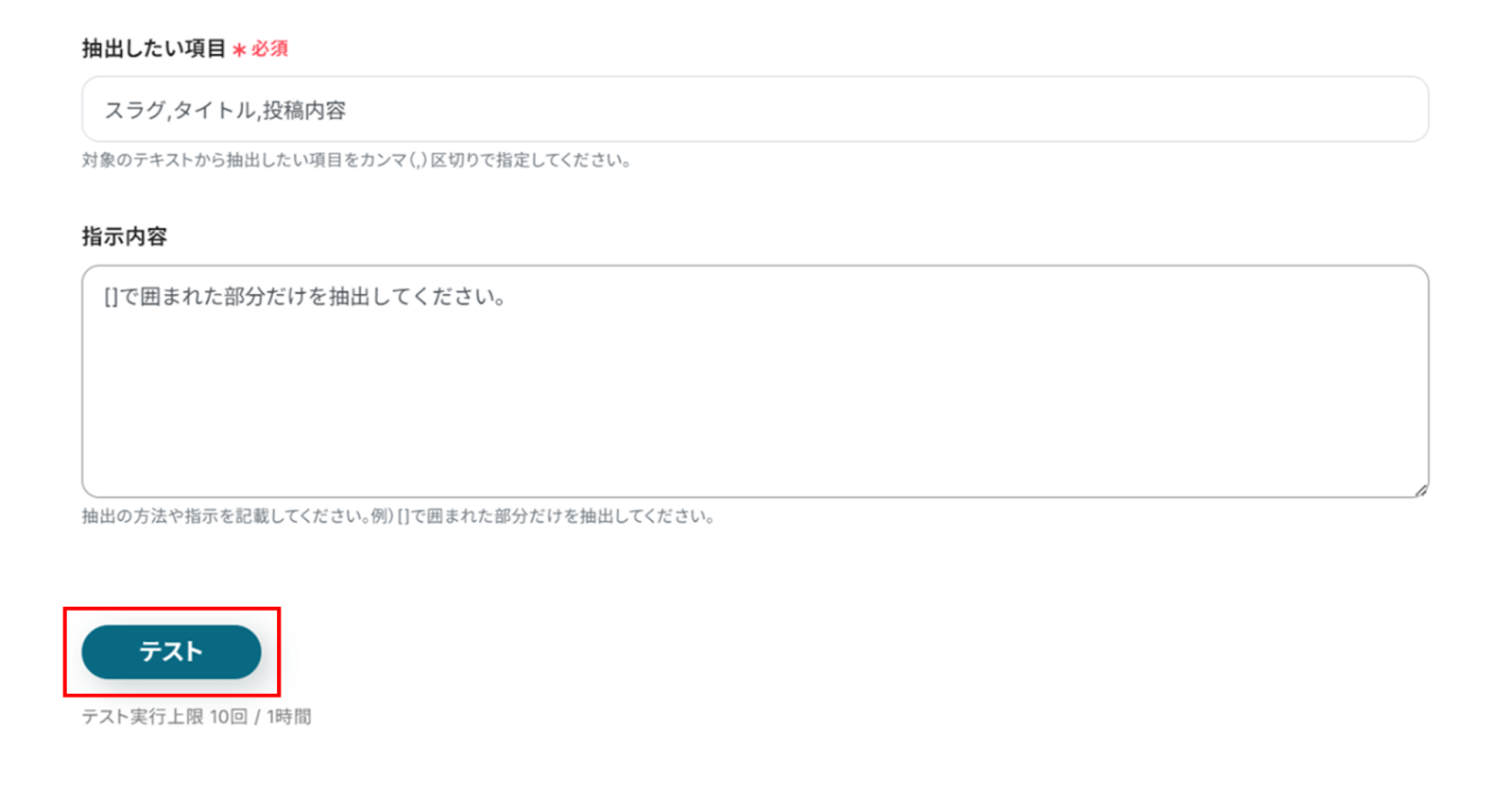 テストに成功すると、取得した値にAIが抽出したテキストが反映されます。
