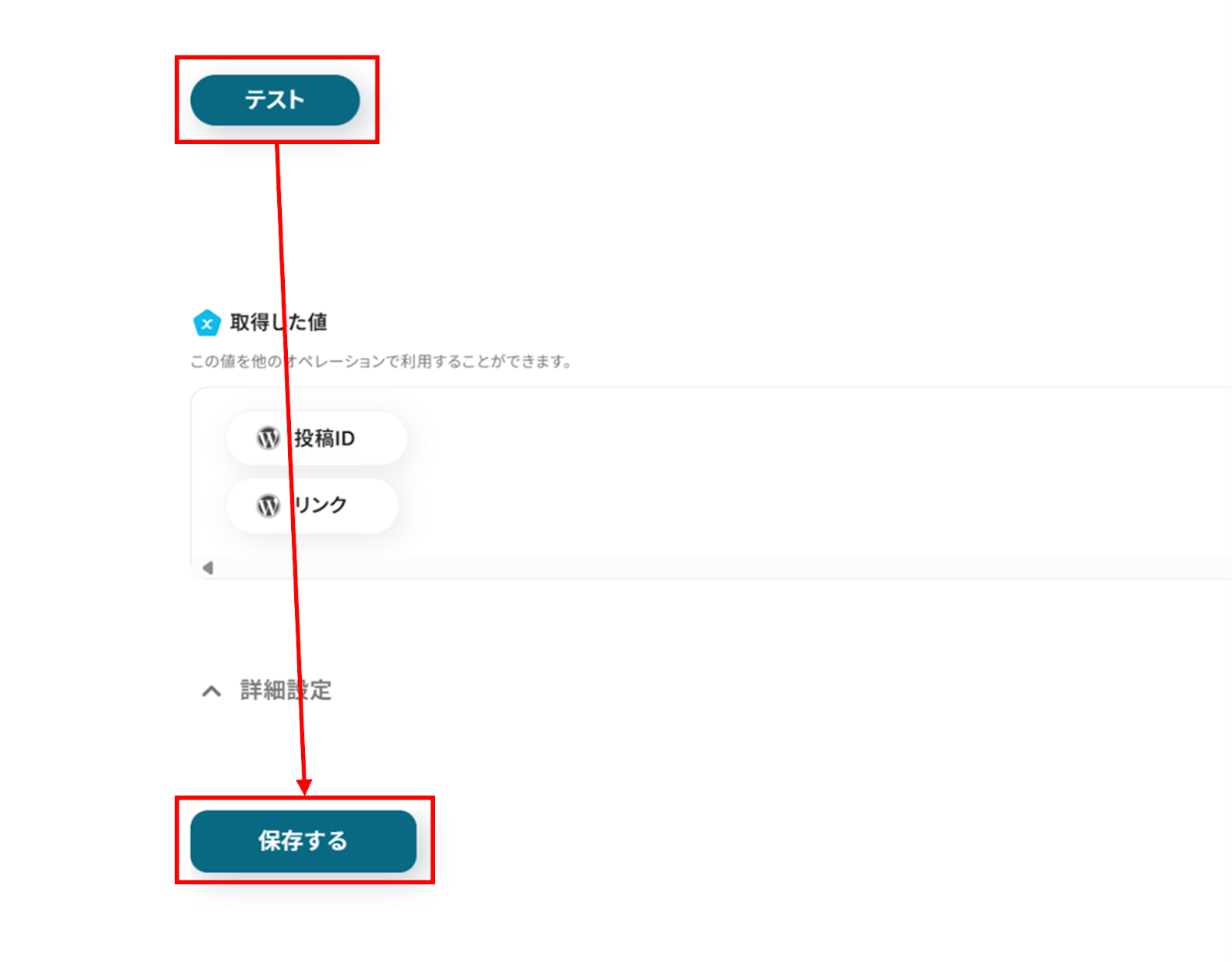 入力が完了したら「テスト」をクリックし、エラーが発生しなければ「保存する」をクリックします。