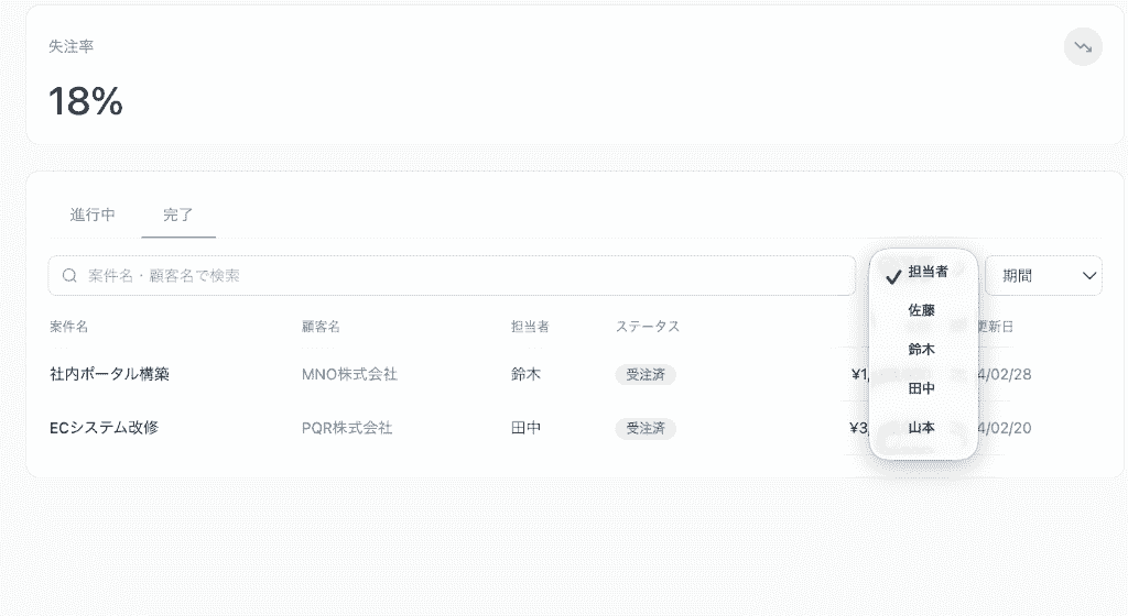担当者や期間のセレクトボックスの実装までばっちりです!
