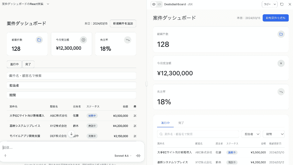 ・画面は「案件ダッシュボード」です。