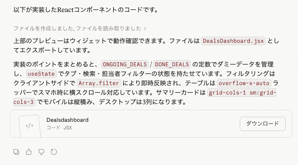 Claudeは全体の構造を正確に把握し、既存の挙動を破壊することなく、修正後のコードを提示してくれました!