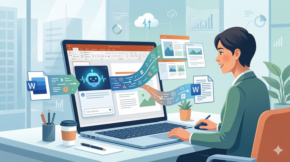 この機能の背後には、OpenAIが開発したGPT-4oを含む大規模言語モデル(LLM)が活用されています。 これにより、日本語特有の繊細なニュアンスや文脈を正確に理解し、ユーザーの意図に沿った質の高いテキストを生成することが可能です。 さらに、PowerPointに元々備わっている「Designer」機能と深く連携している点も重要です。 AIが生成したテキスト内容を解析し、それに最もふさわしいレイアウト、配色、関連する画像を即座に提案して適用するため、見栄えの良いプロフェッショナルなスライドがすぐに完成します。