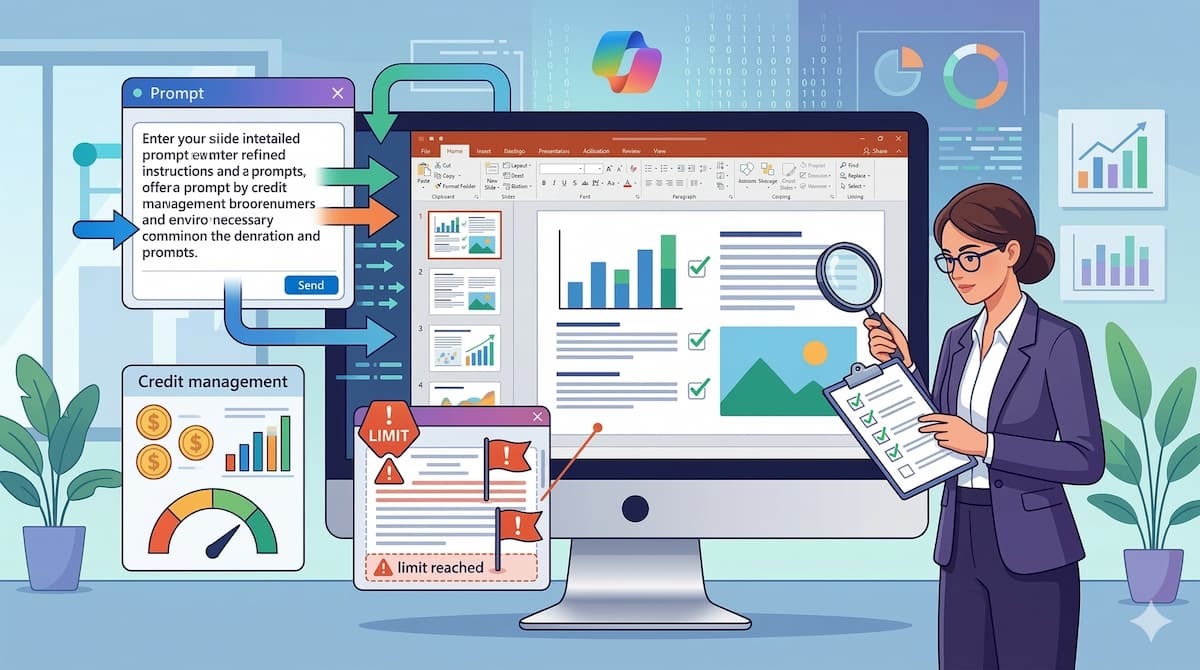 Copilot in PowerPointはまるで魔法のようなツールに見えますが、AIならではの技術的な制約や、人間がコントロールすべきポイントがいくつか存在します。 導入の効果を最大化し、業務上のトラブルを防ぐために、利用者が事前に把握しておくべき重要な注意点を解説します。