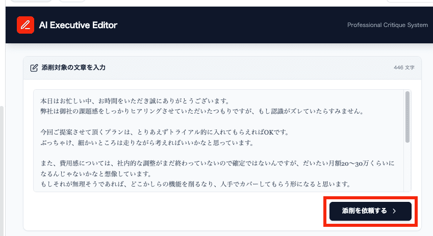 「添削を依頼する」ボタンをクリックします。