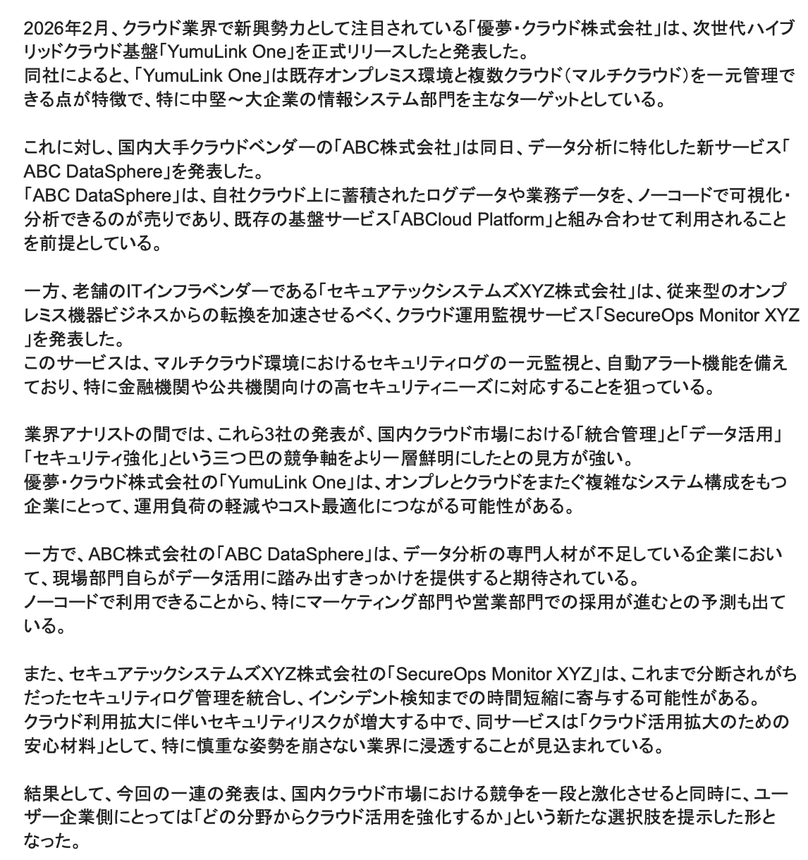 検証で使うダミーの長文記事を用意します。