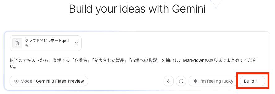 以下のようなプロンプトをチャット欄に入力し、ファイルを添付後、実行します!