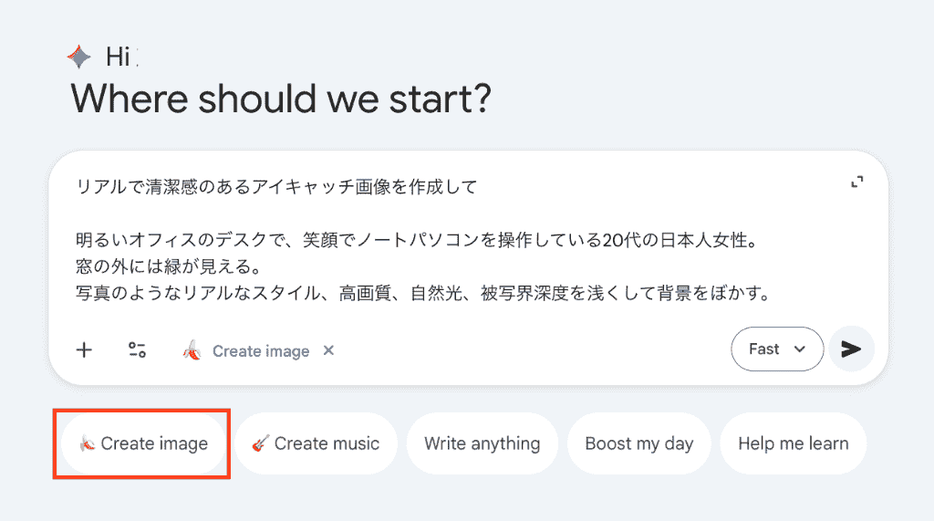 特に「Imagen」の実力は高く、ブログのアイキャッチから資料作成、アイデア出しまで幅広く活用可能!