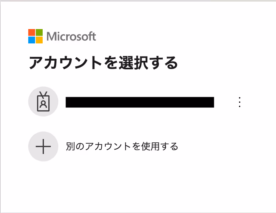 Microsoft SharePointを検索・選択後、Microsoft 365にログインしていない場合、以下のように「アカウントを選択する」が表示されます。