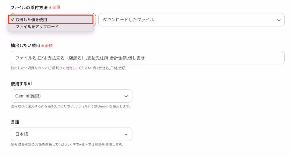 ※YoomのOCR機能では、アクション記載の規定の文字数を超えるデータや、文字が小さすぎる場合に正しく読み取れないことがあります。文字数や文字の大きさには少し余裕を持たせてご利用ください。