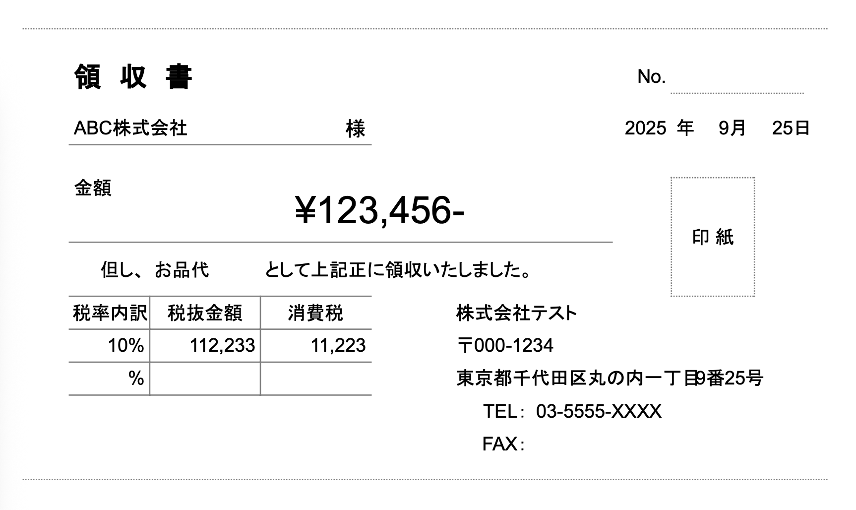 この記事では、サンプルとして以下の画像ファイル(領収書)をMicrosoft SharePointにアップロードしています。