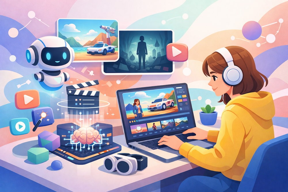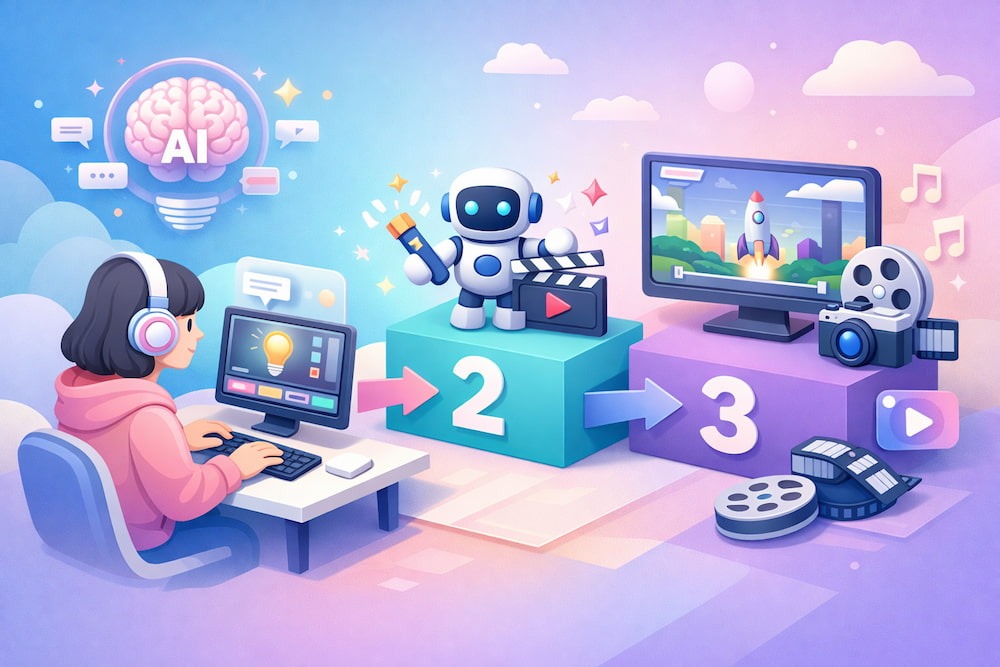 テキストから動画を生成するAIとは、ユーザーが入力したテキスト(プロンプト)をもとに、その内容を解釈し、映像のフレームや動きを生成して動画として構成する技術 です。 例えば、「夕暮れの海辺を走る白い犬」といった簡単なテキストを入力するだけで、AIが背景やキャラクターの動き、光の当たり方までを計算し、まるでカメラで撮影したかのような映像を生成します。複雑なプログラミングや動画編集ソフトの知識は一切必要なく、頭の中に思い描いたイメージを言葉にするだけで映像化できる のが大きな魅力です。