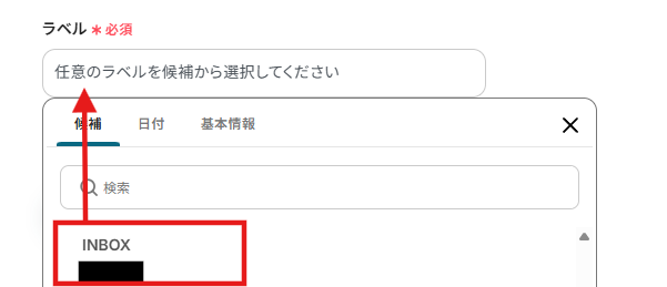 ラベルには受信したメールが含まれるラベルを候補から選択しましょう。