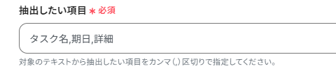抽出したい項目には「タスク名,期日,詳細」と入力しました。