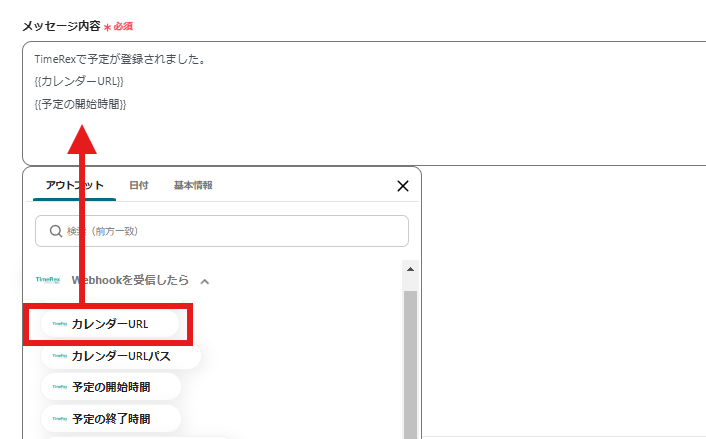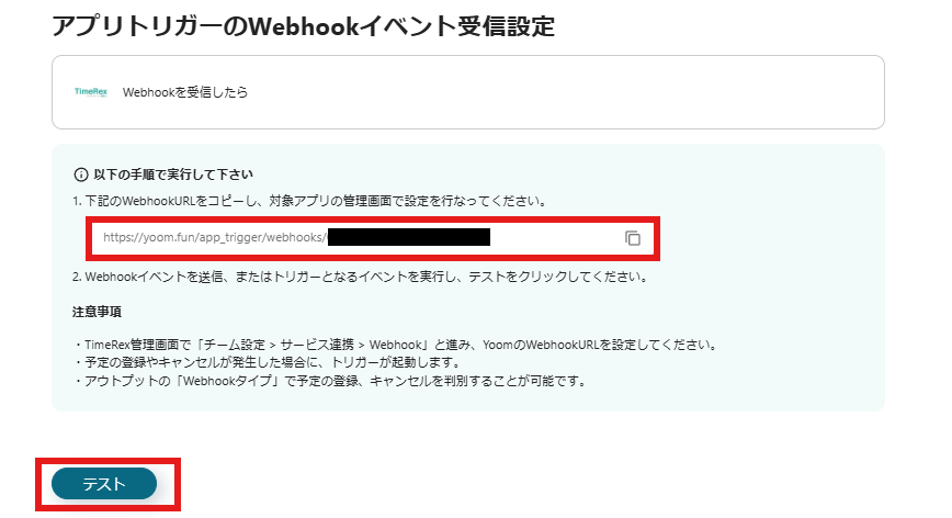 TimeRexでWebhookの設定が必要です。