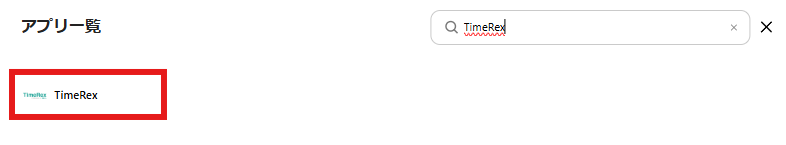 検索窓にTimeRexと入力し、表示された候補をクリックします。
